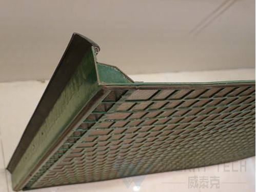 8、篩網一般有上部的篩分層和下部的受力層,要求這2層之間緊密貼合,如果篩網預張緊工藝差,篩網底部的受力層繃緊時,篩分層沒有拉緊,篩機工作時篩網上下顫動的距離過大,和篩框接觸部分不能有效壓緊,這也是引起篩網損壞過快的原因之一。